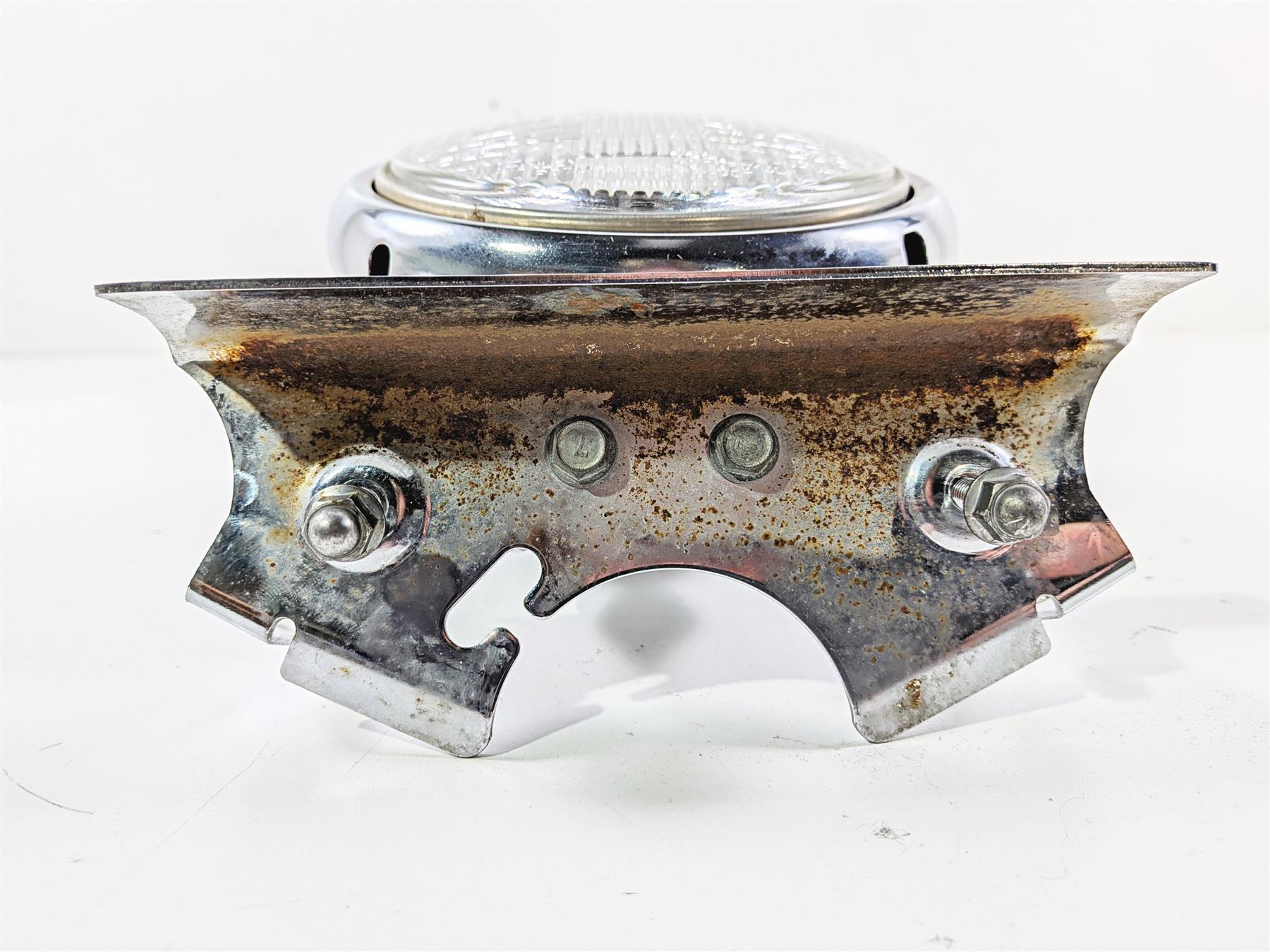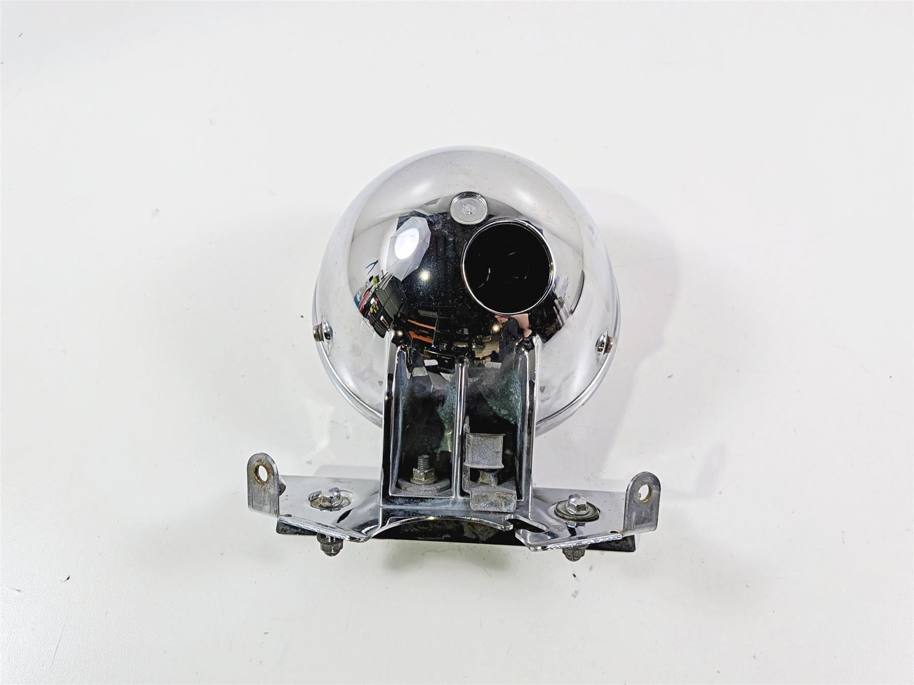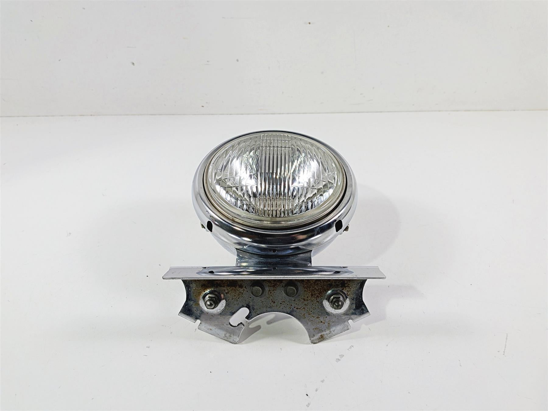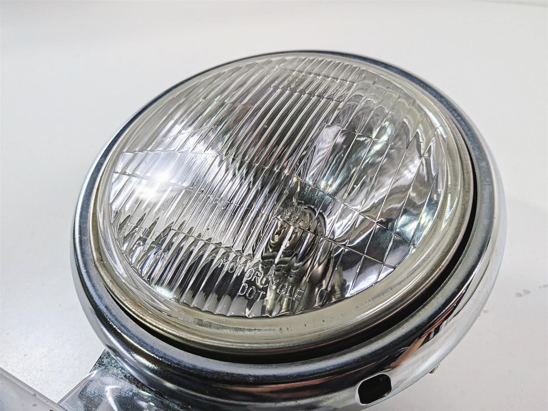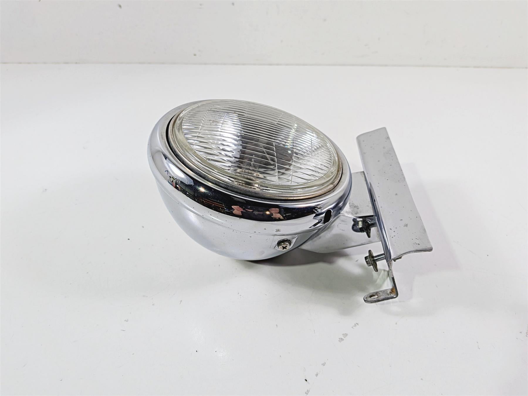 This Chrome Head Light Lamp Headlight & Mount was parted off a 2005 Kawasaki EN500 Vulcan that had 17094 original miles at the time of disassembly.