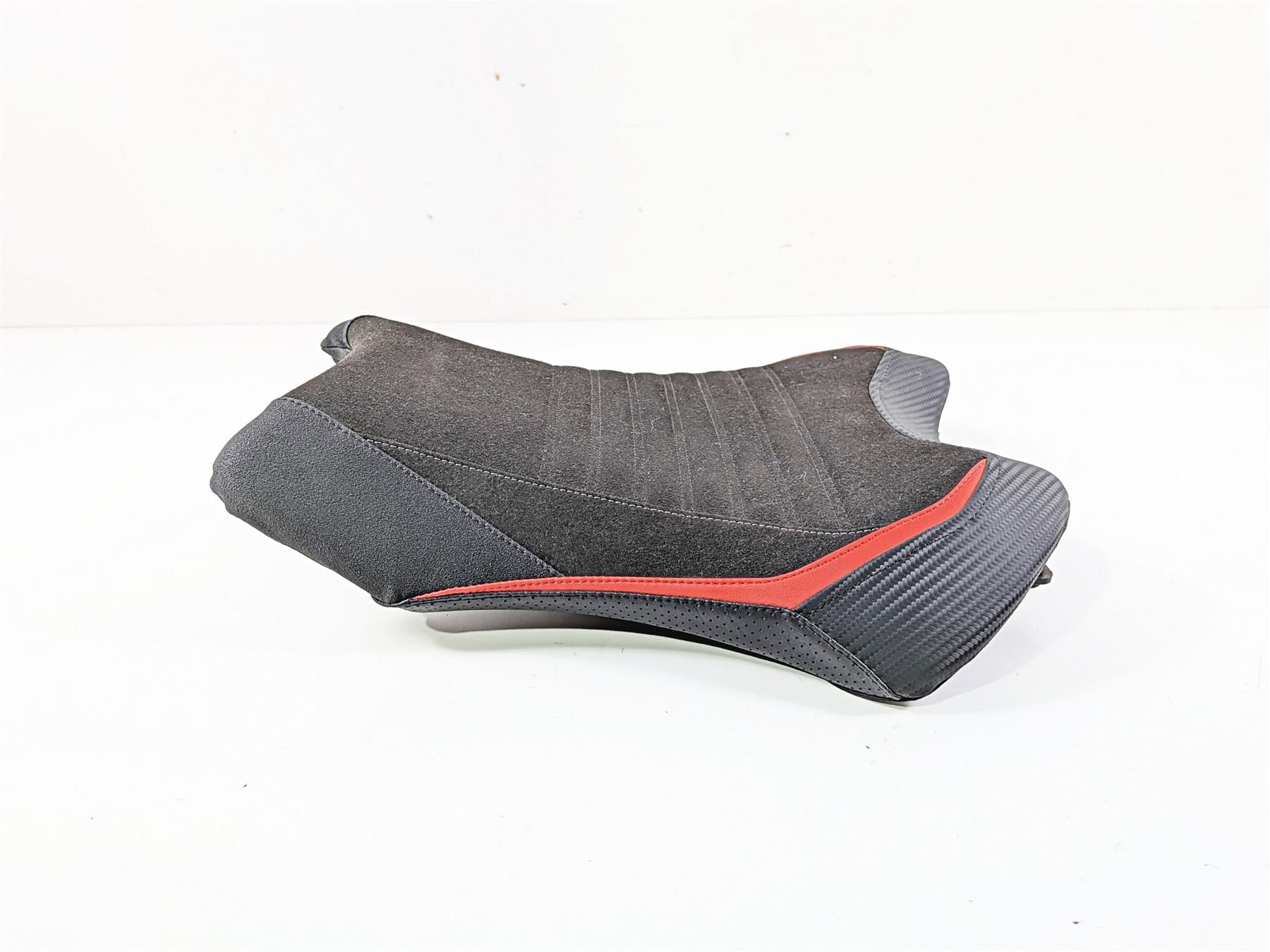 Comments: Stock seat with Luimoto cover3481102 (K130-2) Suede/Red/CF Black/Perforated Black/Tec-Grip/Gunmetal Stitch