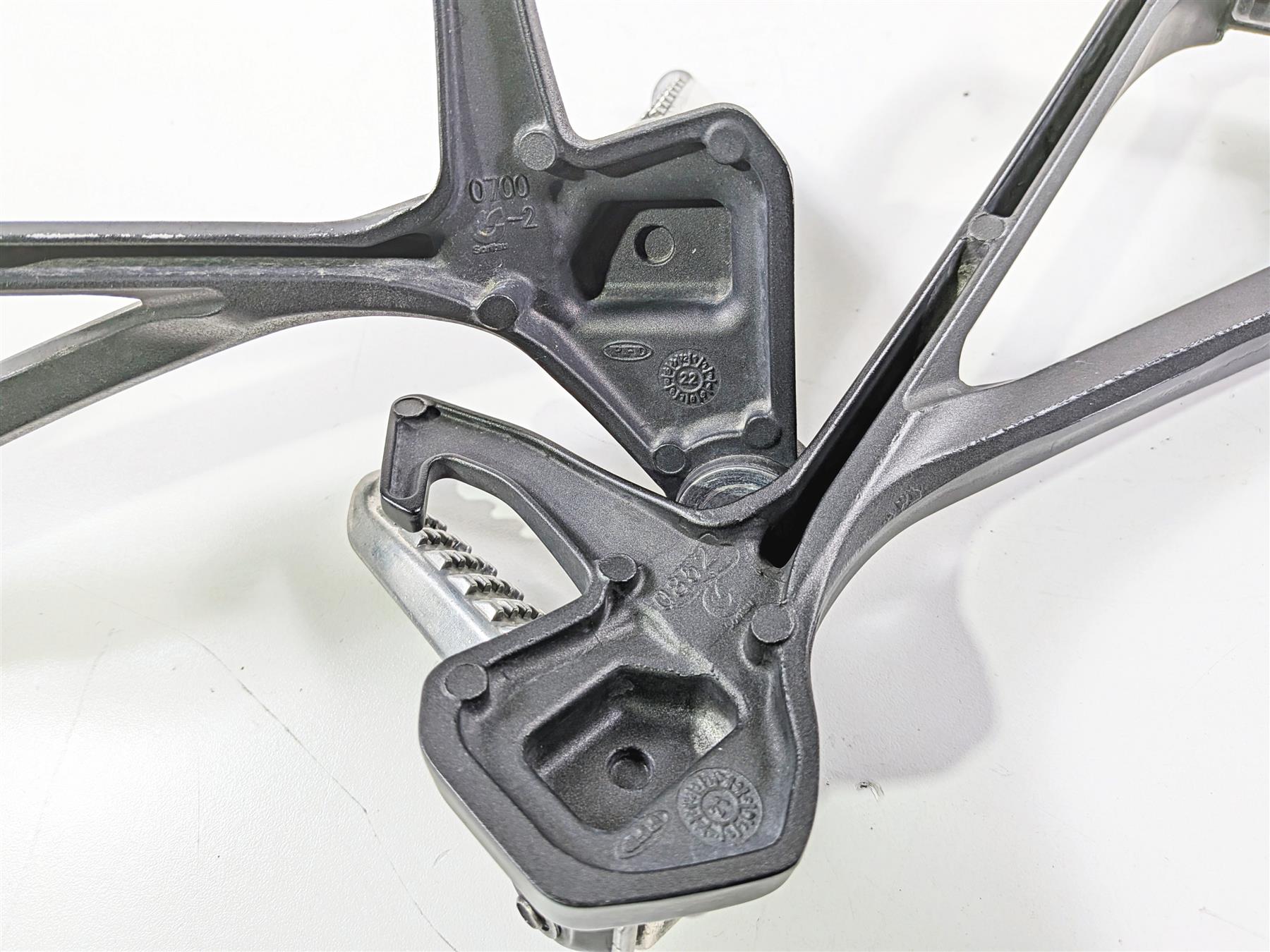 This Passenger Foot Peg Rest Set was parted off the described Bike that had 10394 original miles at the time of disassembly.