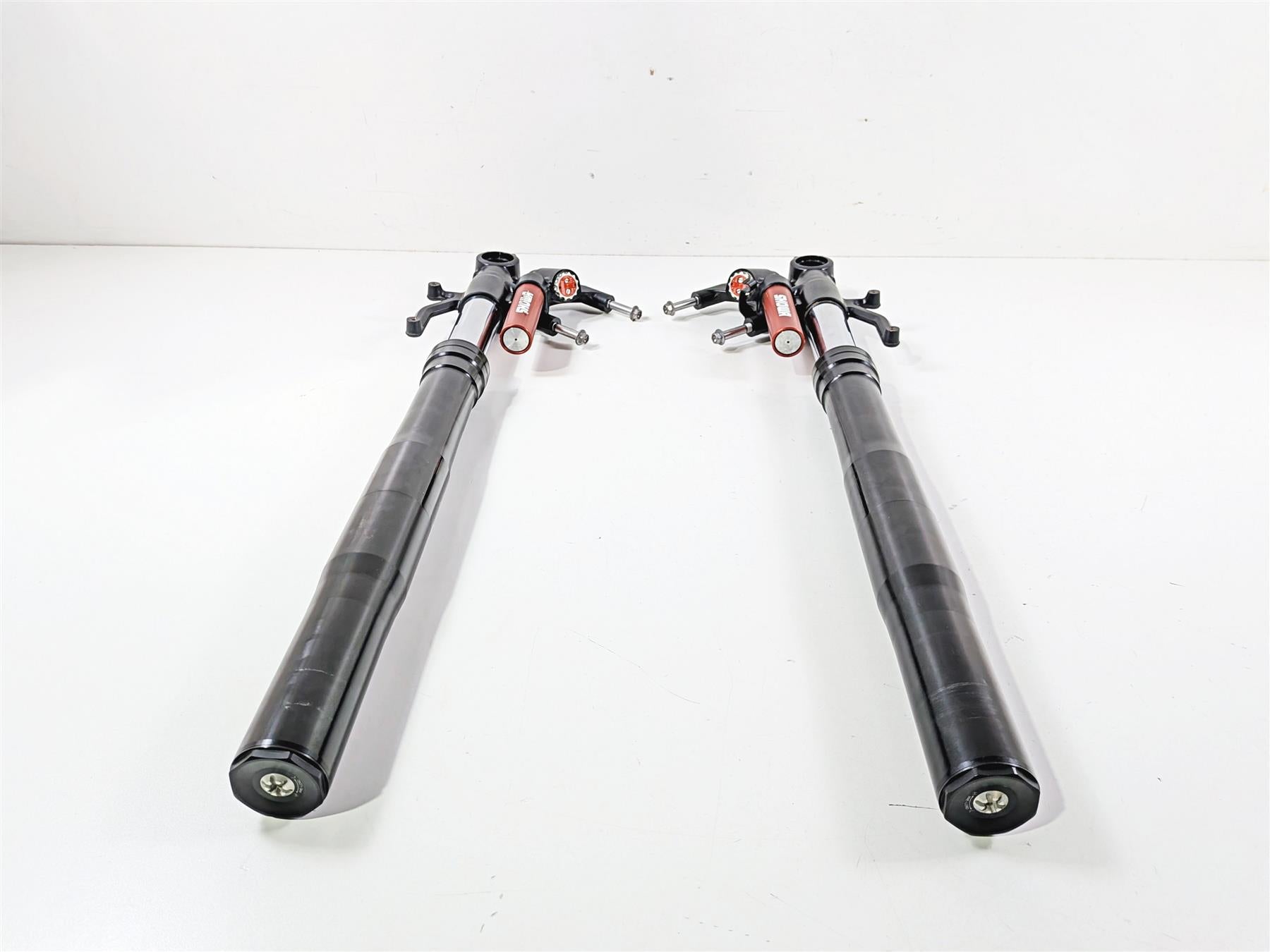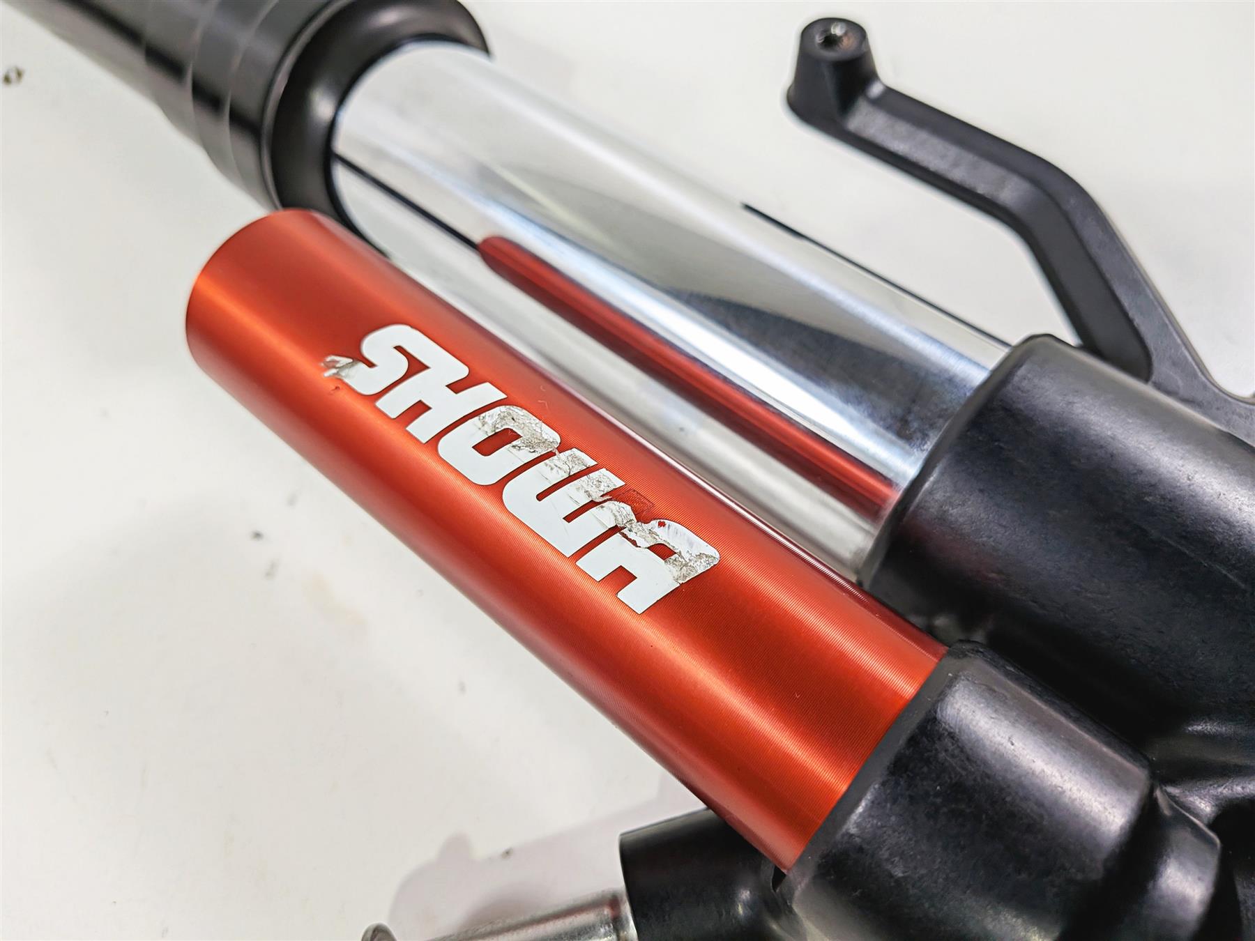 Comments: they are both straight and do not leak. No heavy wear in the travel area. One side shows a little rash at the bottom and one of the showa stickers shows some damage. They can be used as is