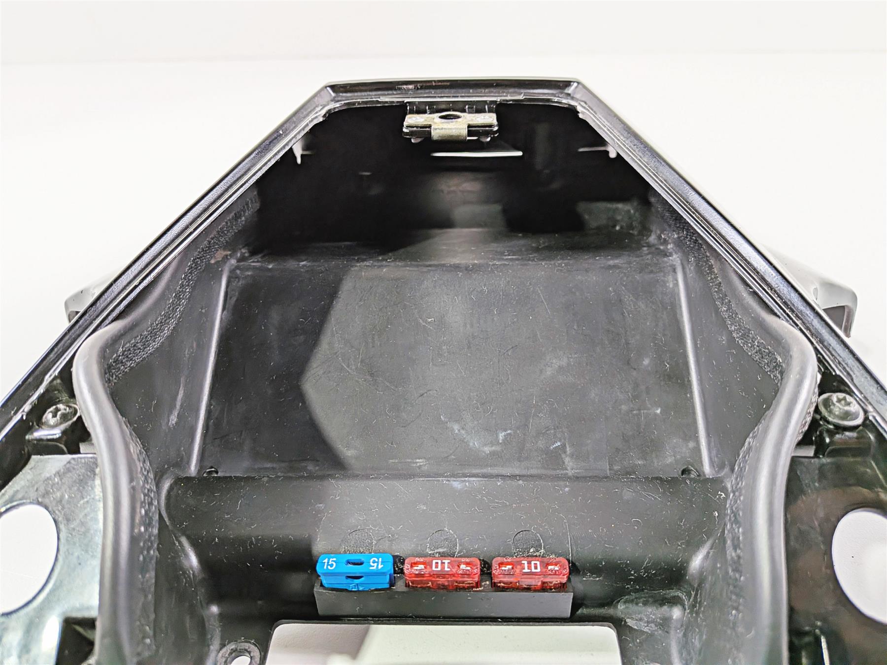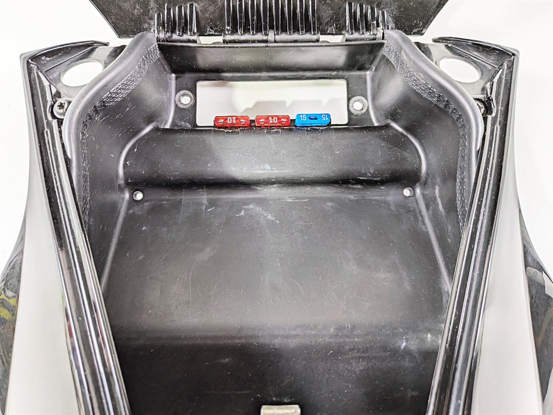 This Upper Center Tank Cover Fairing Storage was parted off the described Bike that had 30985 original miles at the time of disassembly.