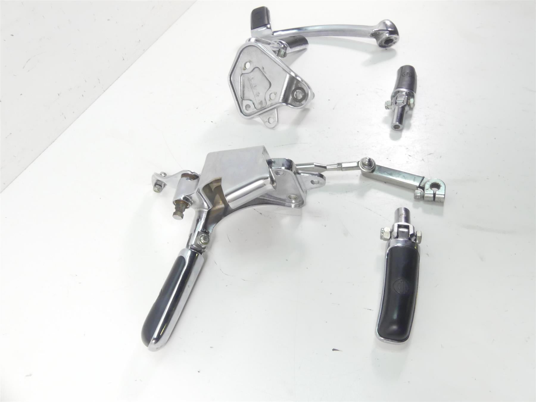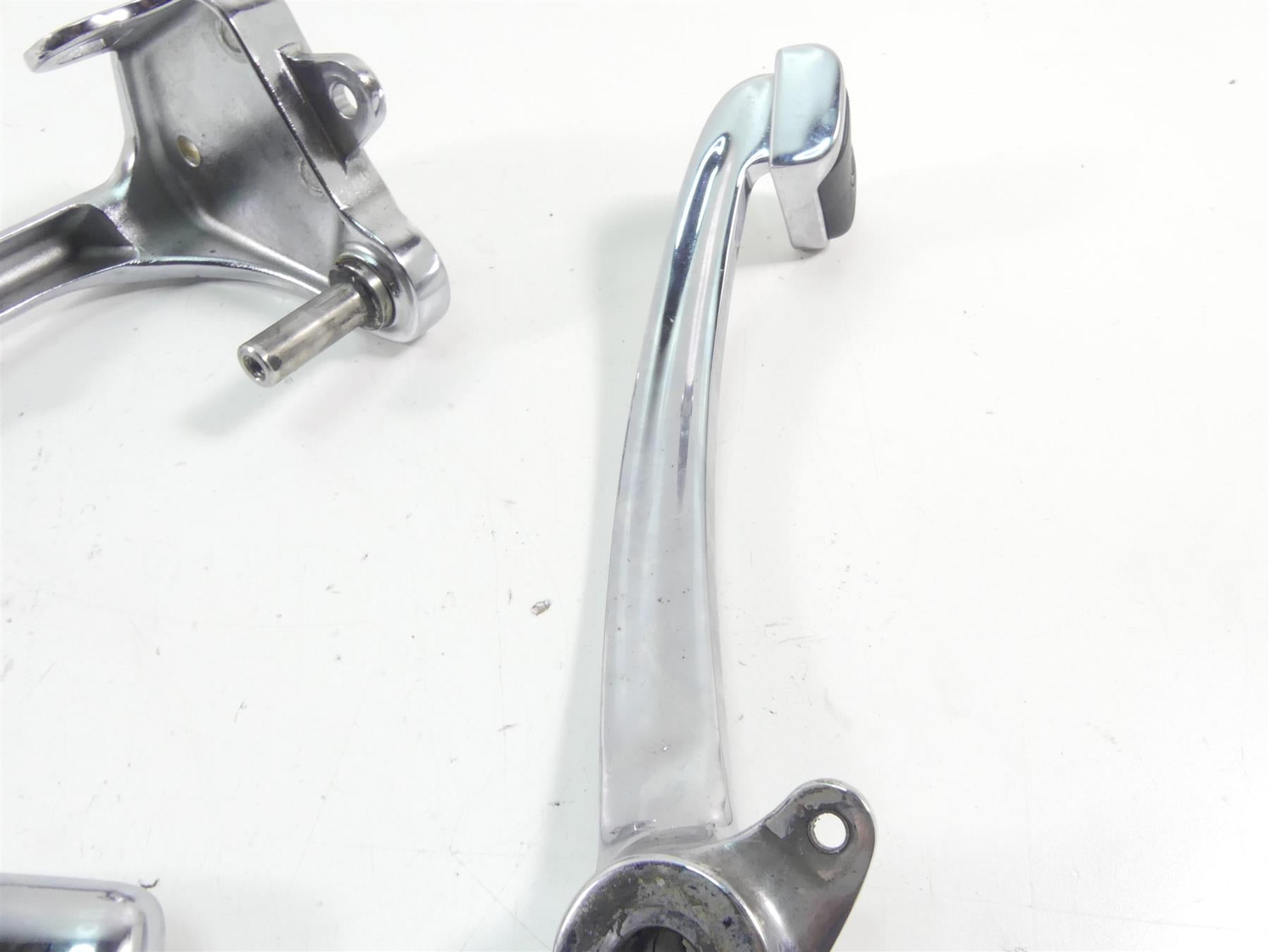 Comments: This full chrome foot peg shifter brake pedal rear peg set is in great shape. Shows some normal little wear from use and age only but no rash or bad chrome pitting