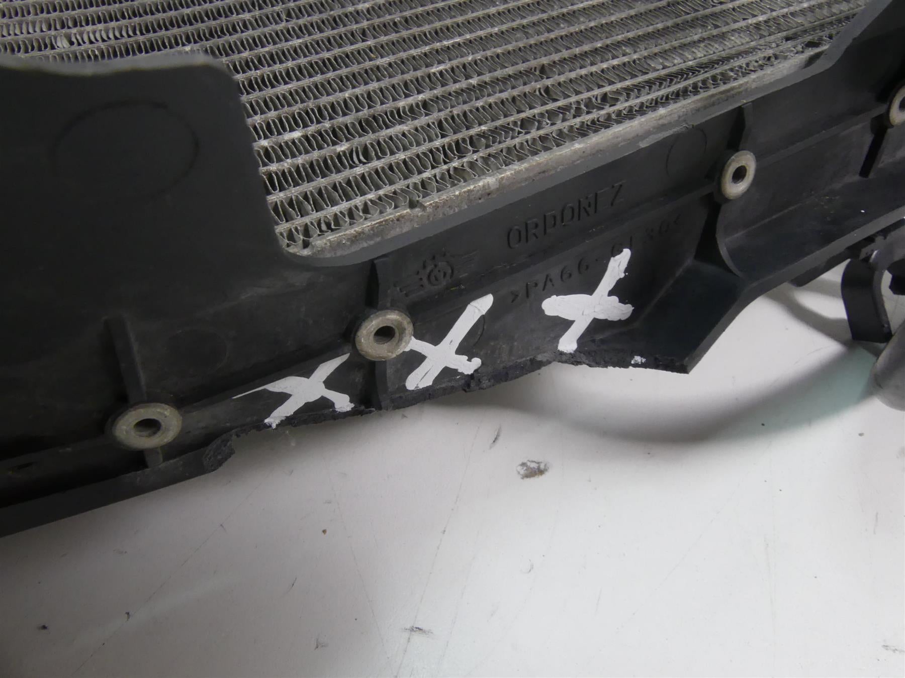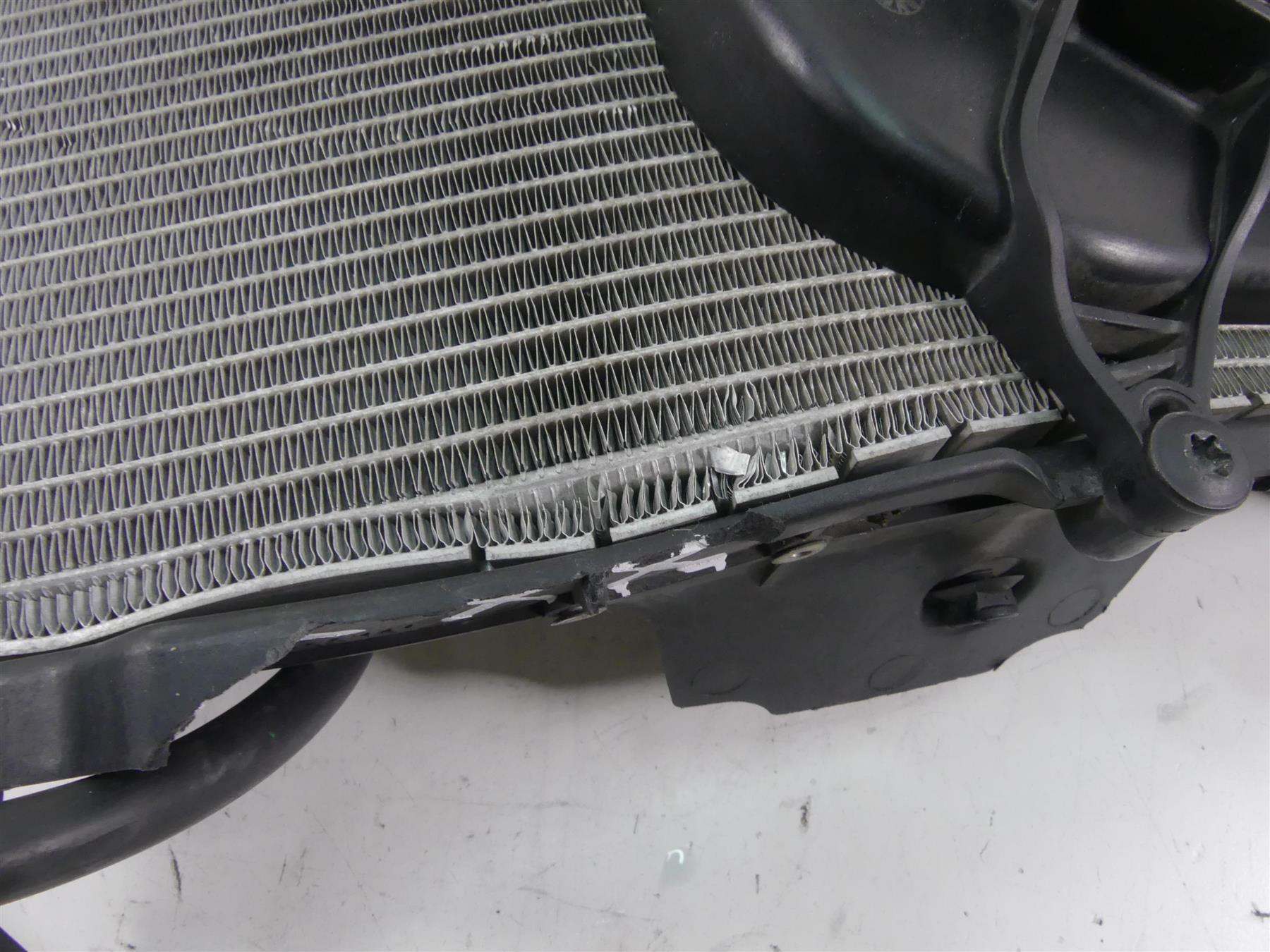 Comments: dented at upper edge as you can see in pics. The plastic mount is cracked at this area as well. Still good for parts. No leaks.