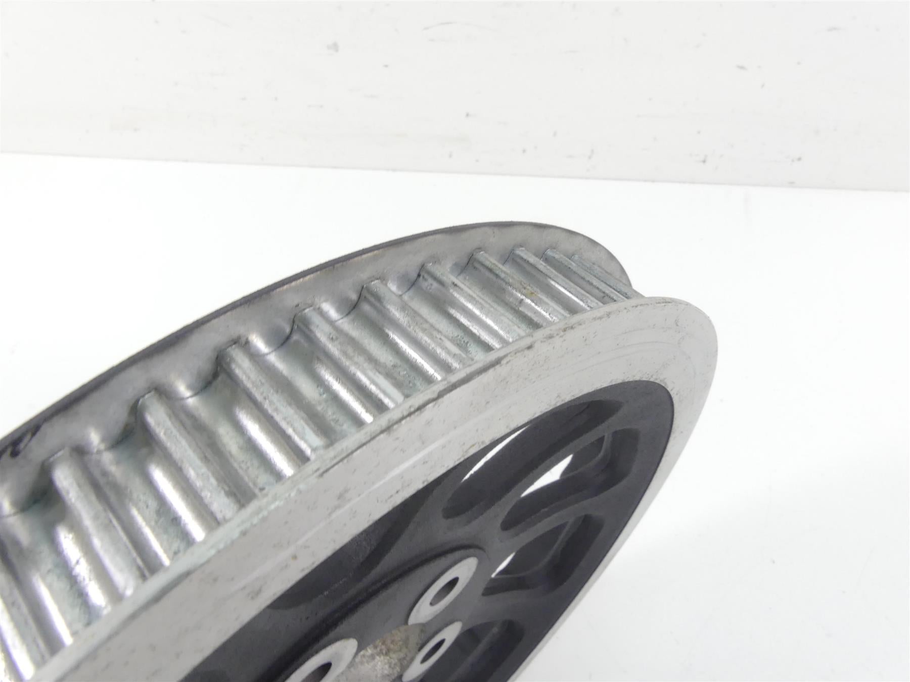This Rear Drive Belt Sprocket Pulley 1" 66T was parted off the described Bike that had 4126 original miles at the time of disassembly.