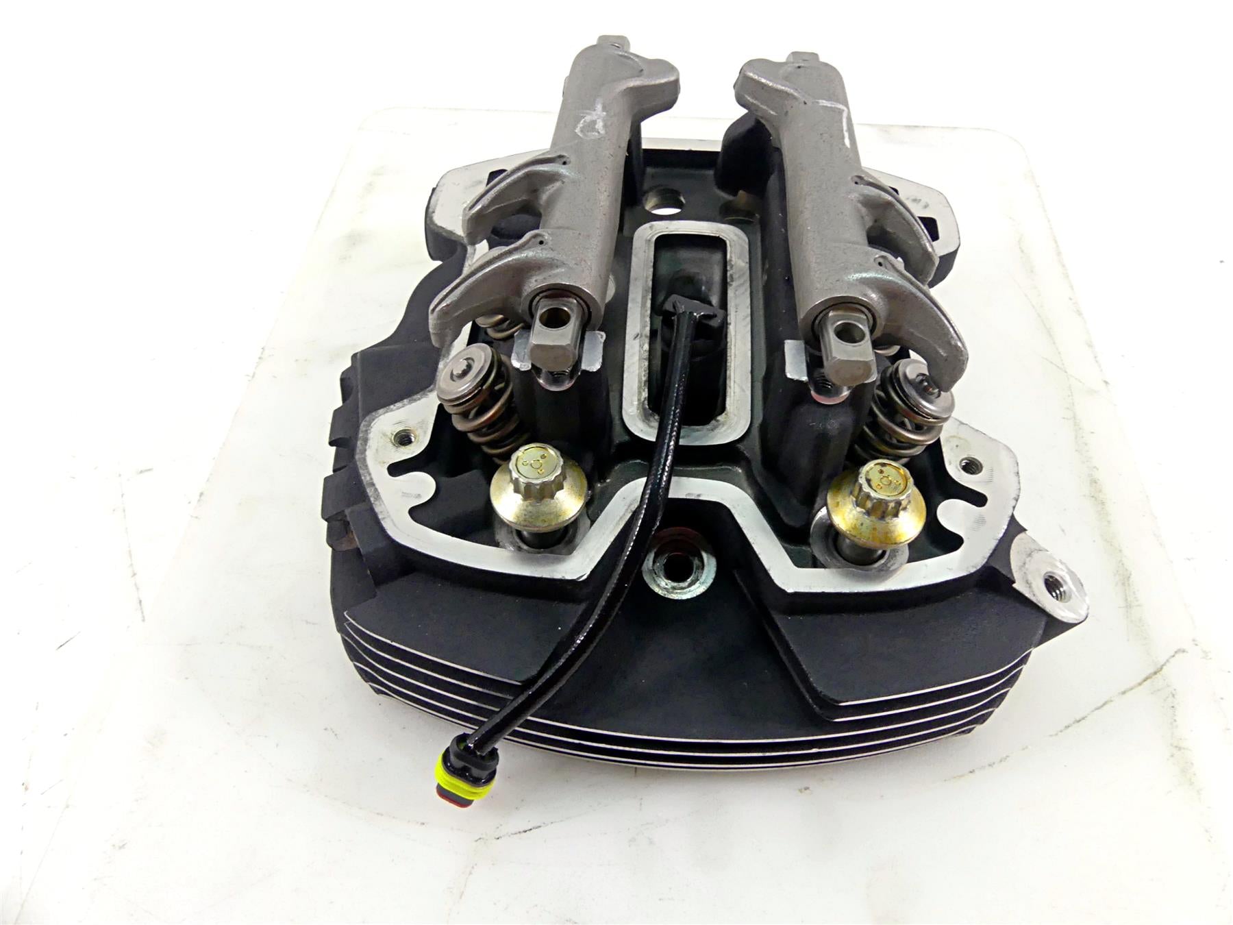 This Front Cylinder Head M8 114ci was parted off the described Bike that had 7680 original miles at the time of disassembly.
