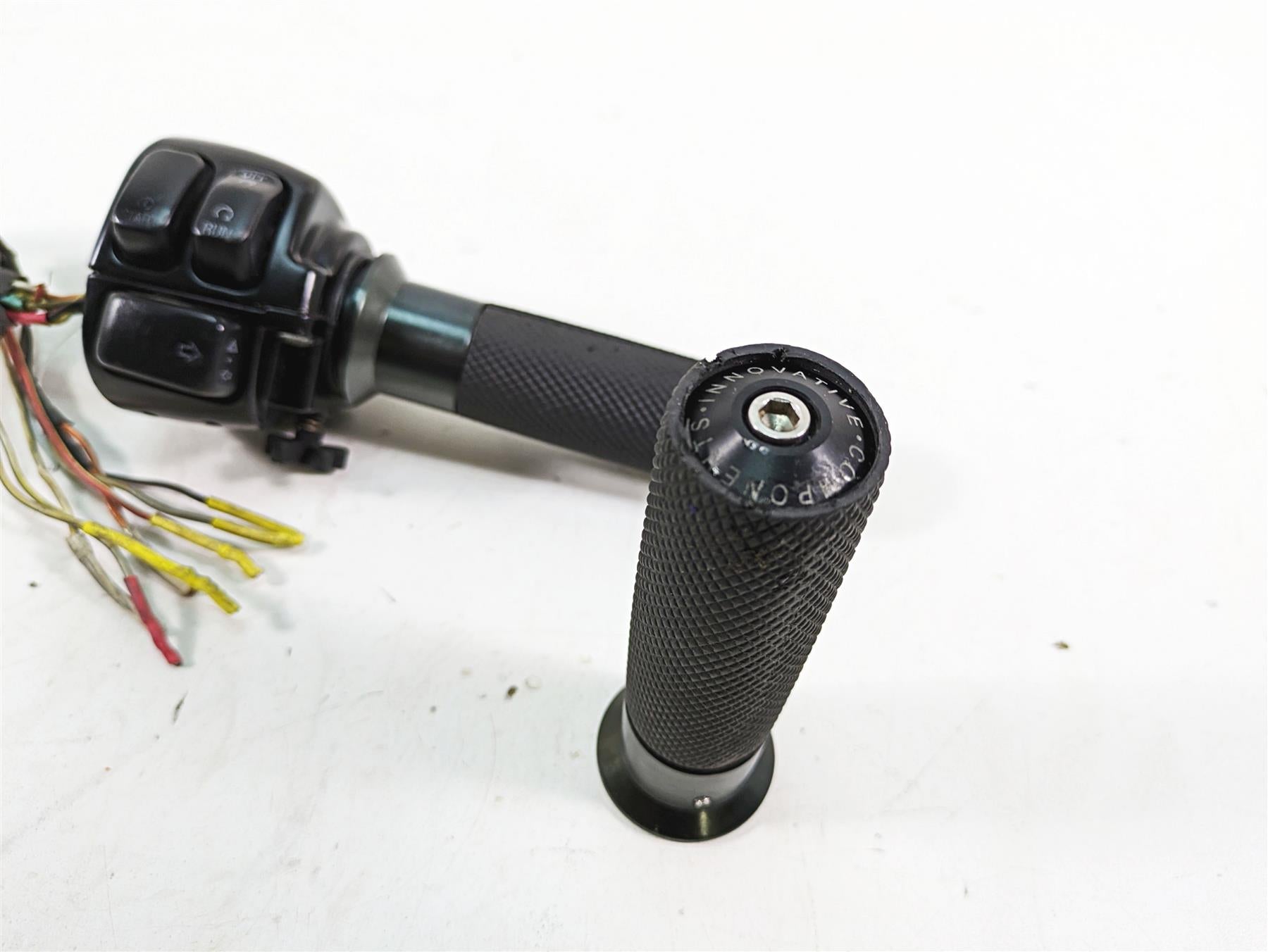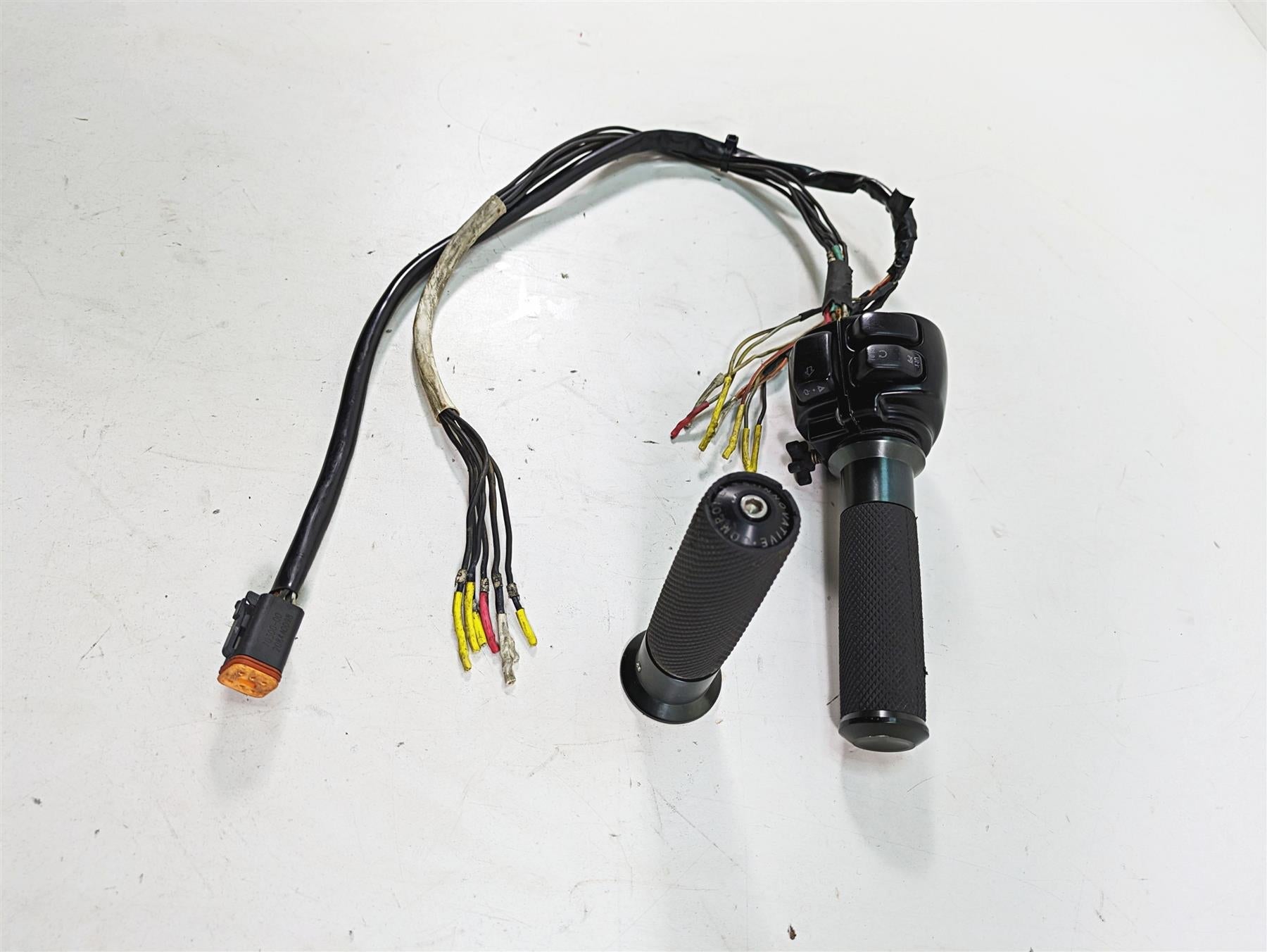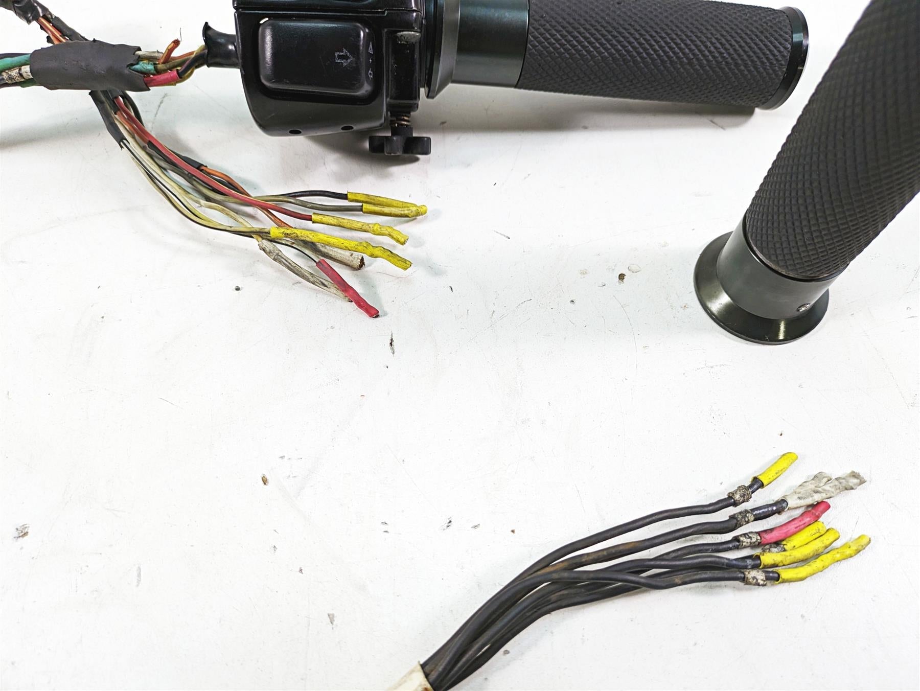 Comments: red wire with yellow tracer is cut near switch. Wires are cut in middle to get them out. Wires are extended due to ape hanger handlebars
