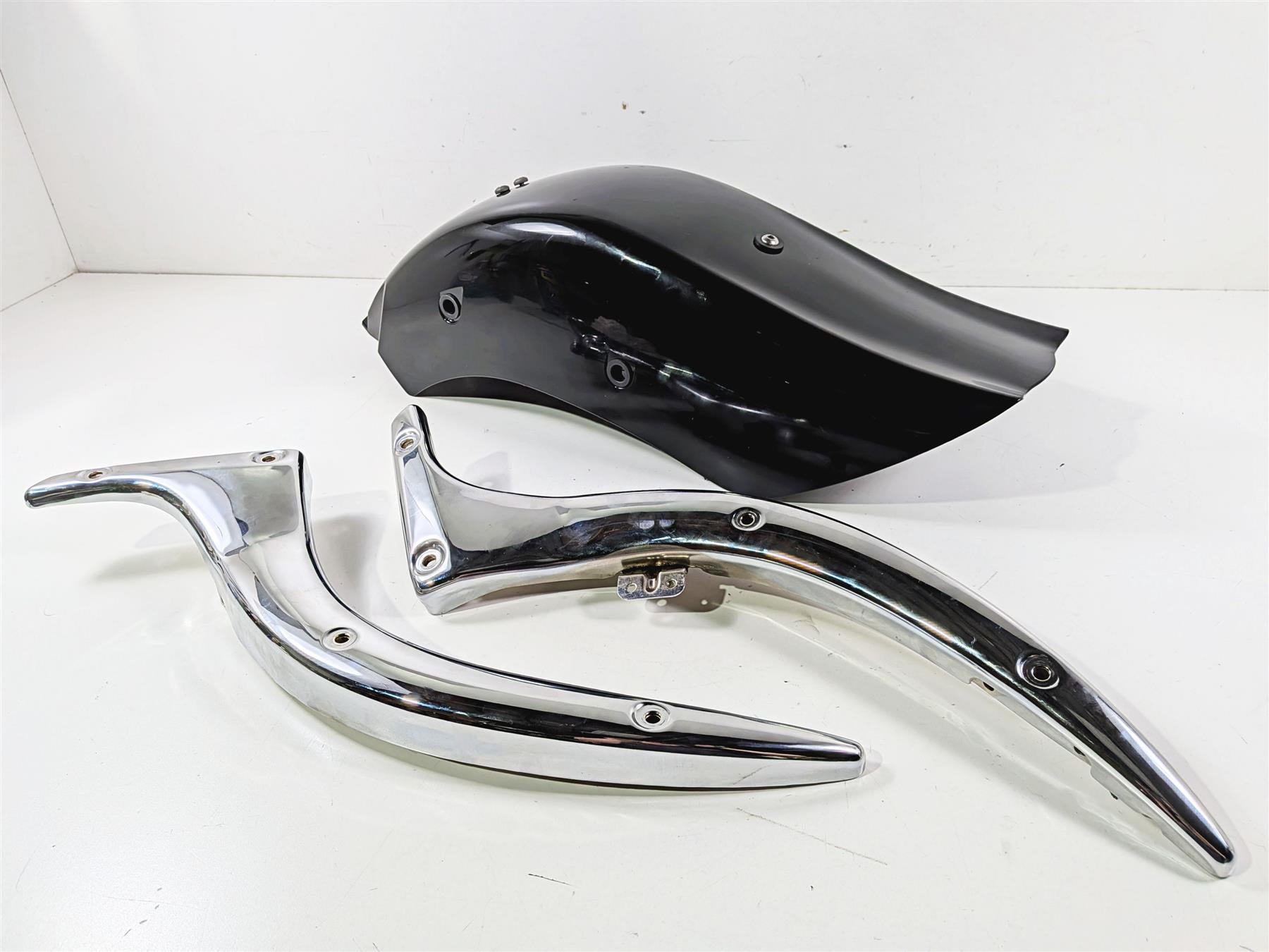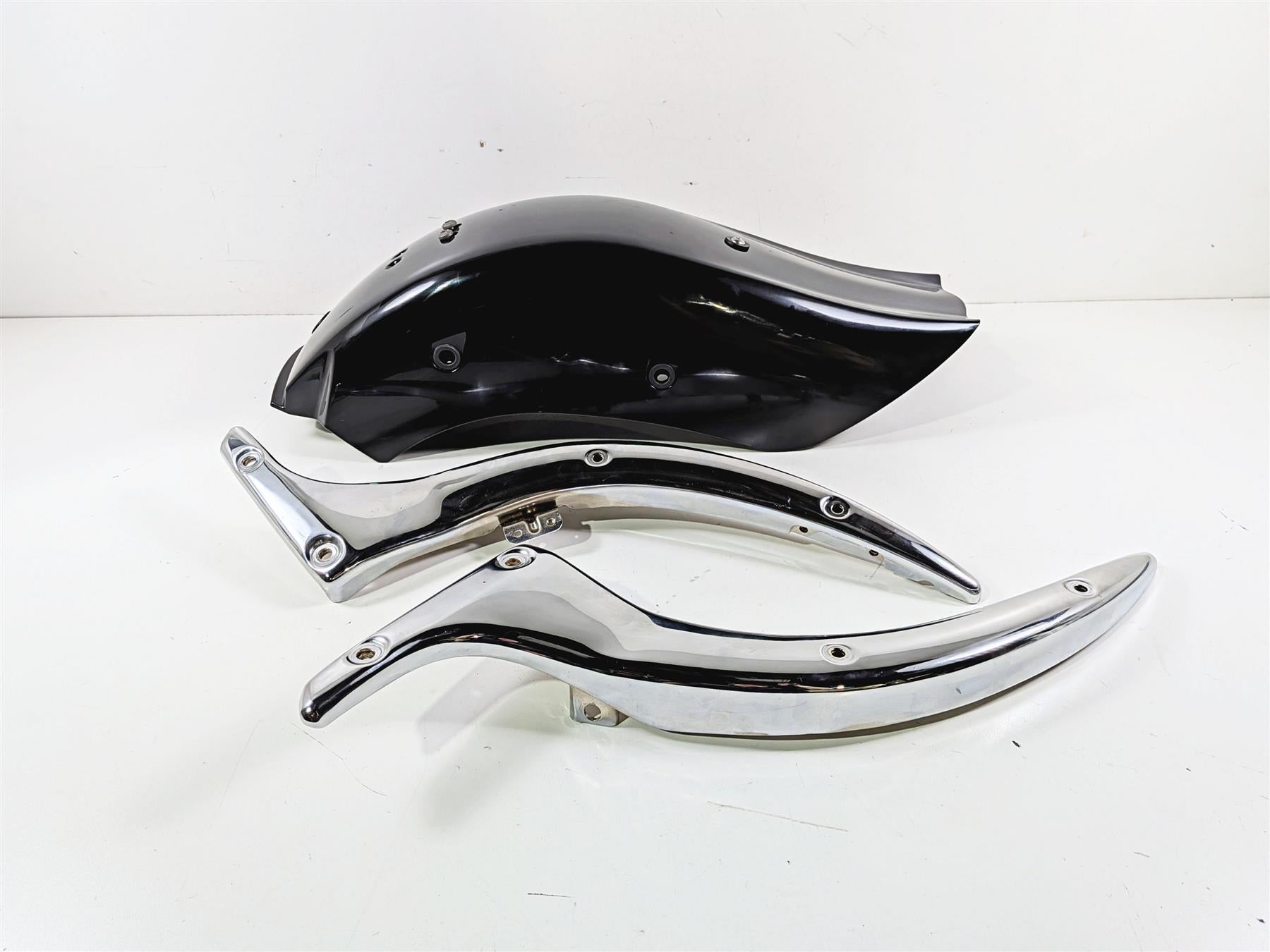 This Rear Fender & Side Chrome Struts was parted off the described Bike that had unknown original miles at the time of disassembly.