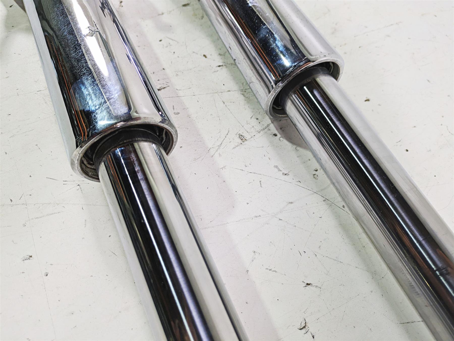 This Chrome Front Fork Set 41mm was parted off the described Bike that had 18278 original miles at the time of disassembly.