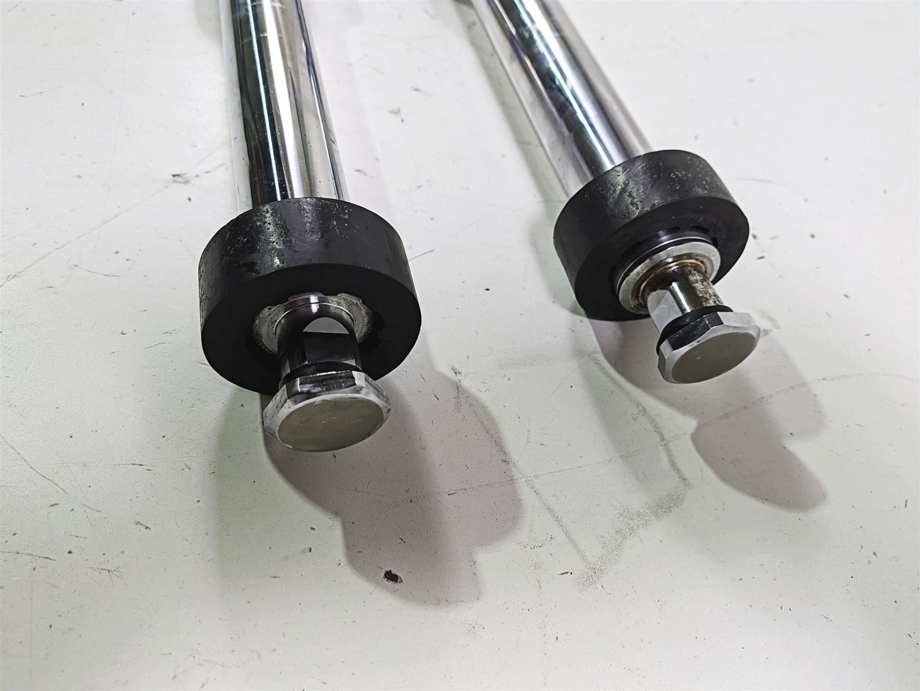 Comments: both legs are straight and do no leak. No heavy wear in travel areas. Both outer tubes show chrome damage as you can see in pics. Inner tubes show rust spots as you can also see in pics.