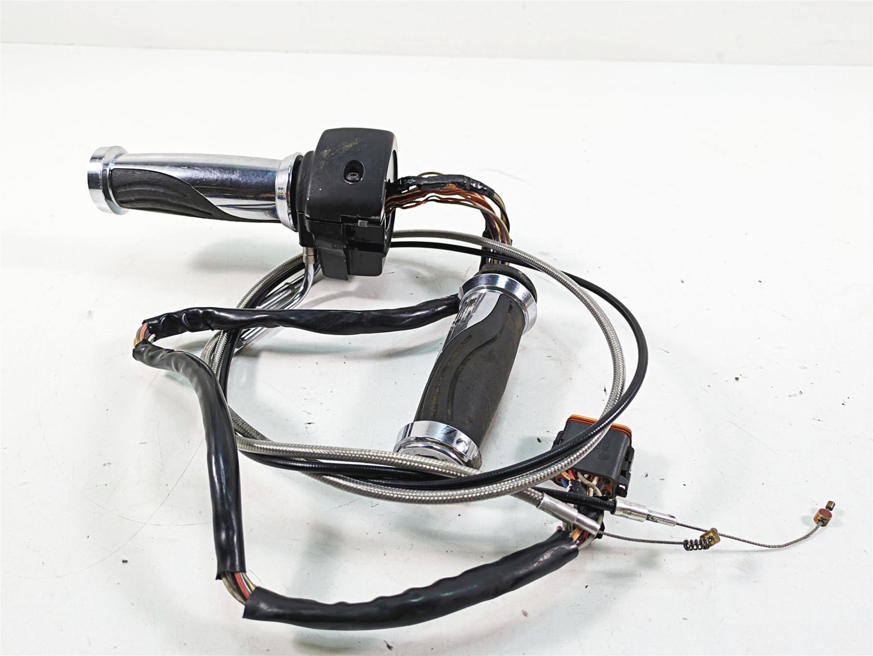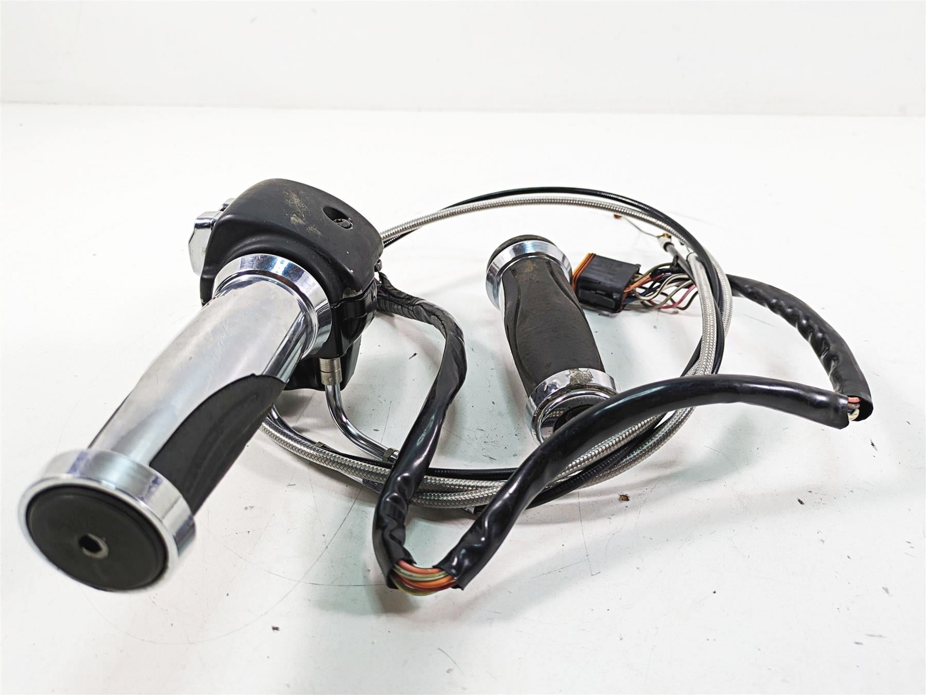 Comments: has chrome knobs but one is missing. Shows some paint and wire damage. Needs some repair. Comes with throttle cable and grip set