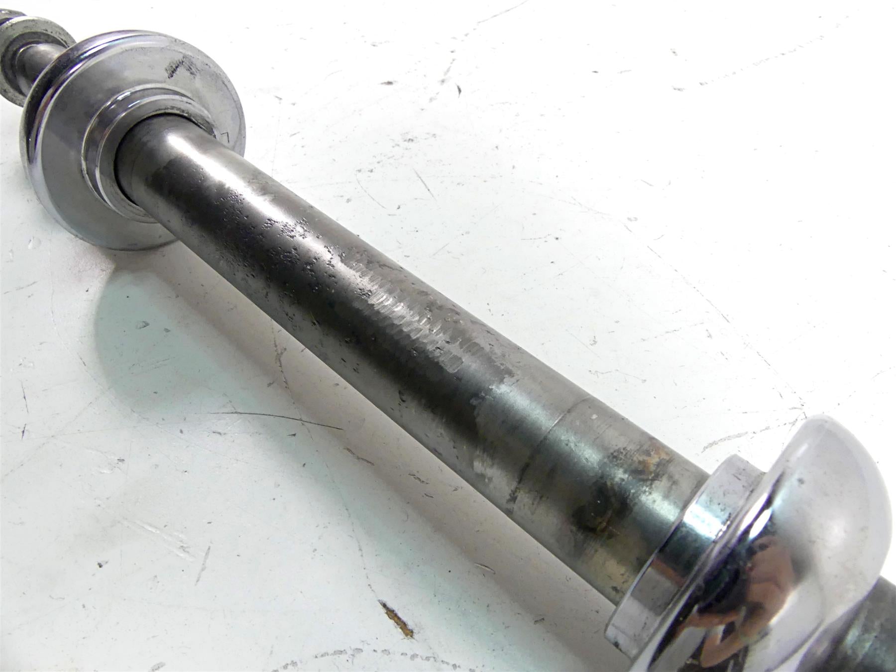This 1" Front Axle Wheel Spindle was parted off the described Bike that had 50776 original miles at the time of disassembly.