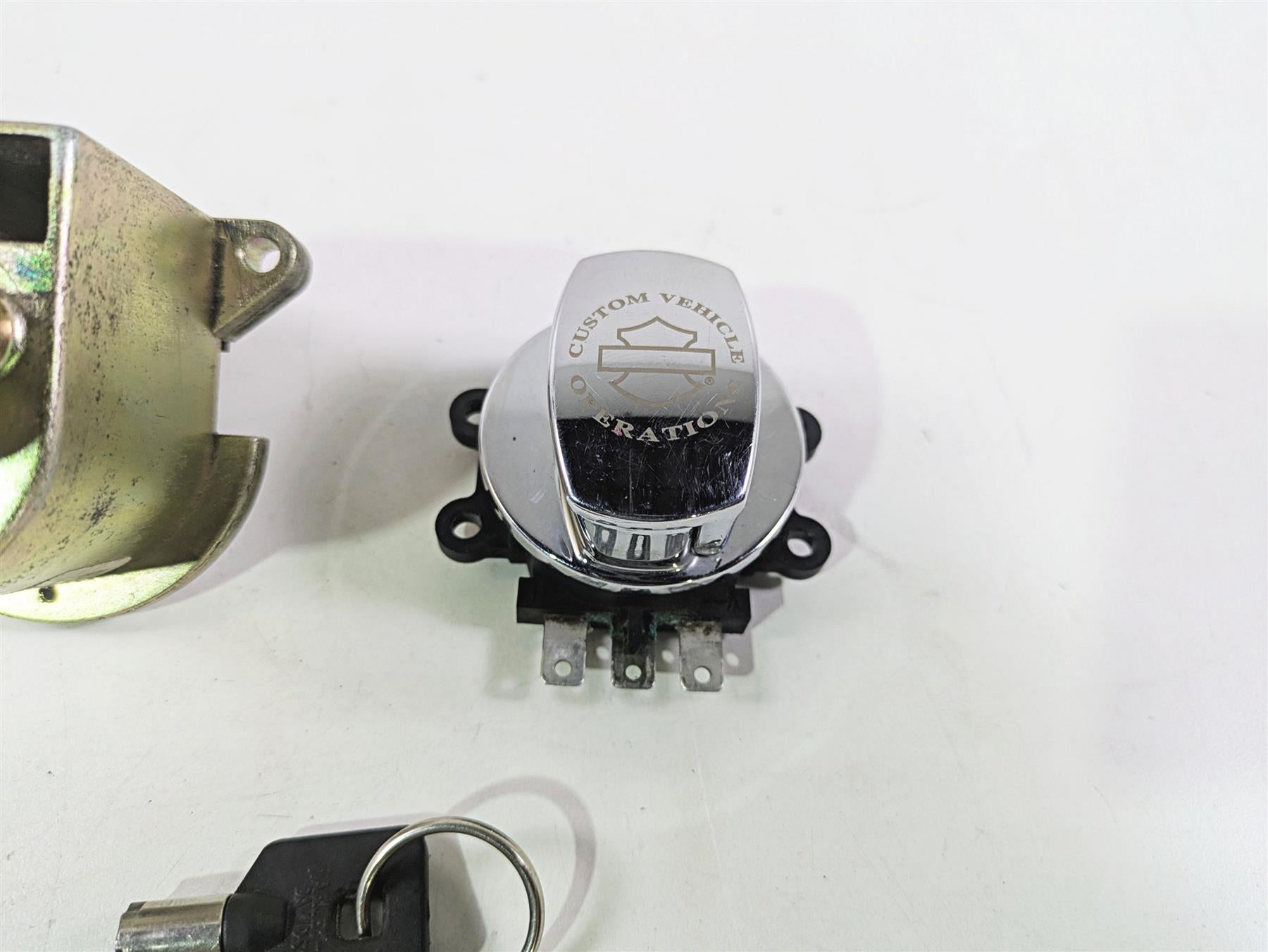 This Ignition Switch Fork Lock Set was parted off the described Bike that had 50416 original miles at the time of disassembly.