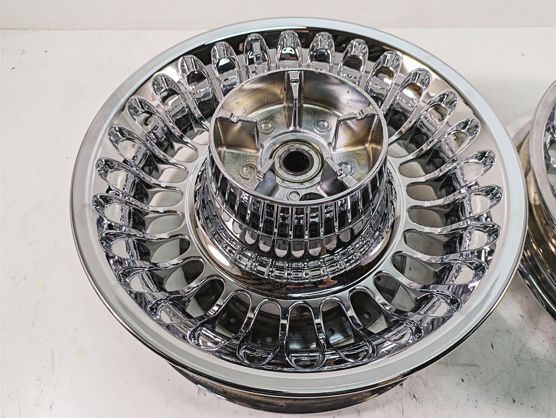 This Front Rear Chrome Wheel Set was parted off the described Bike that had 75690 original miles at the time of disassembly.