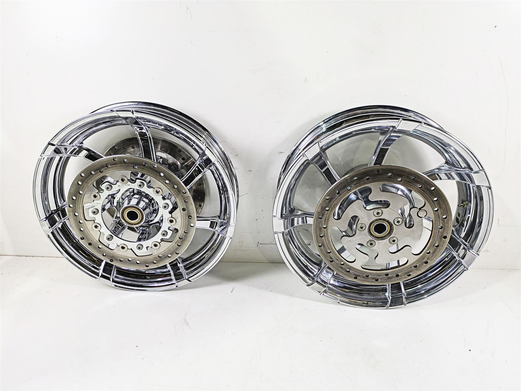 This Front Rear Agitator Chrome Wheel Rim Set was parted off the described Bike that had 71100 original miles at the time of disassembly.