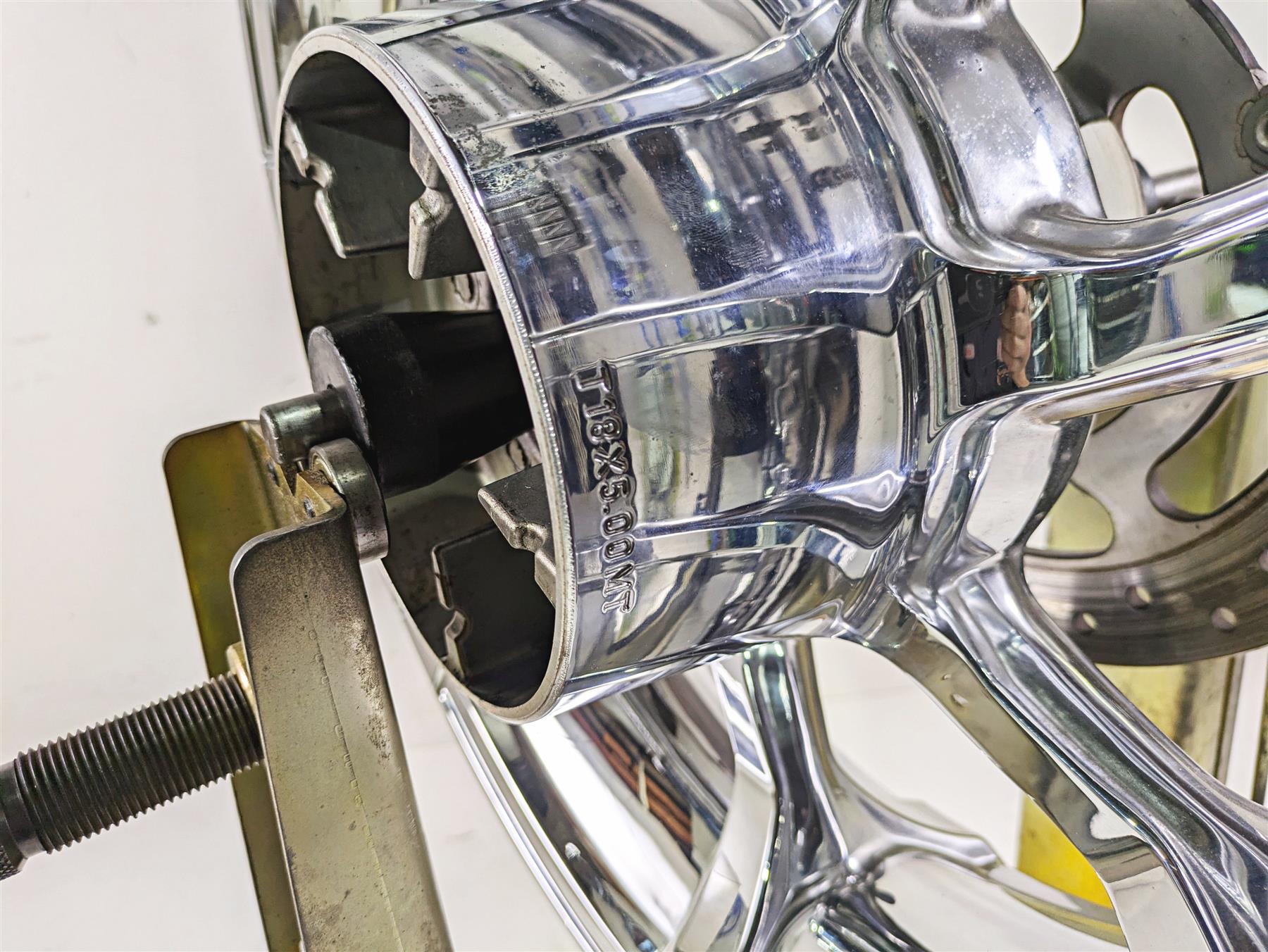 Comments: Front 18x3.5 Rear 18x5. Both are straight and in good condition. No rash and no dents and no chrome damage. Both come with good 25mm bearings