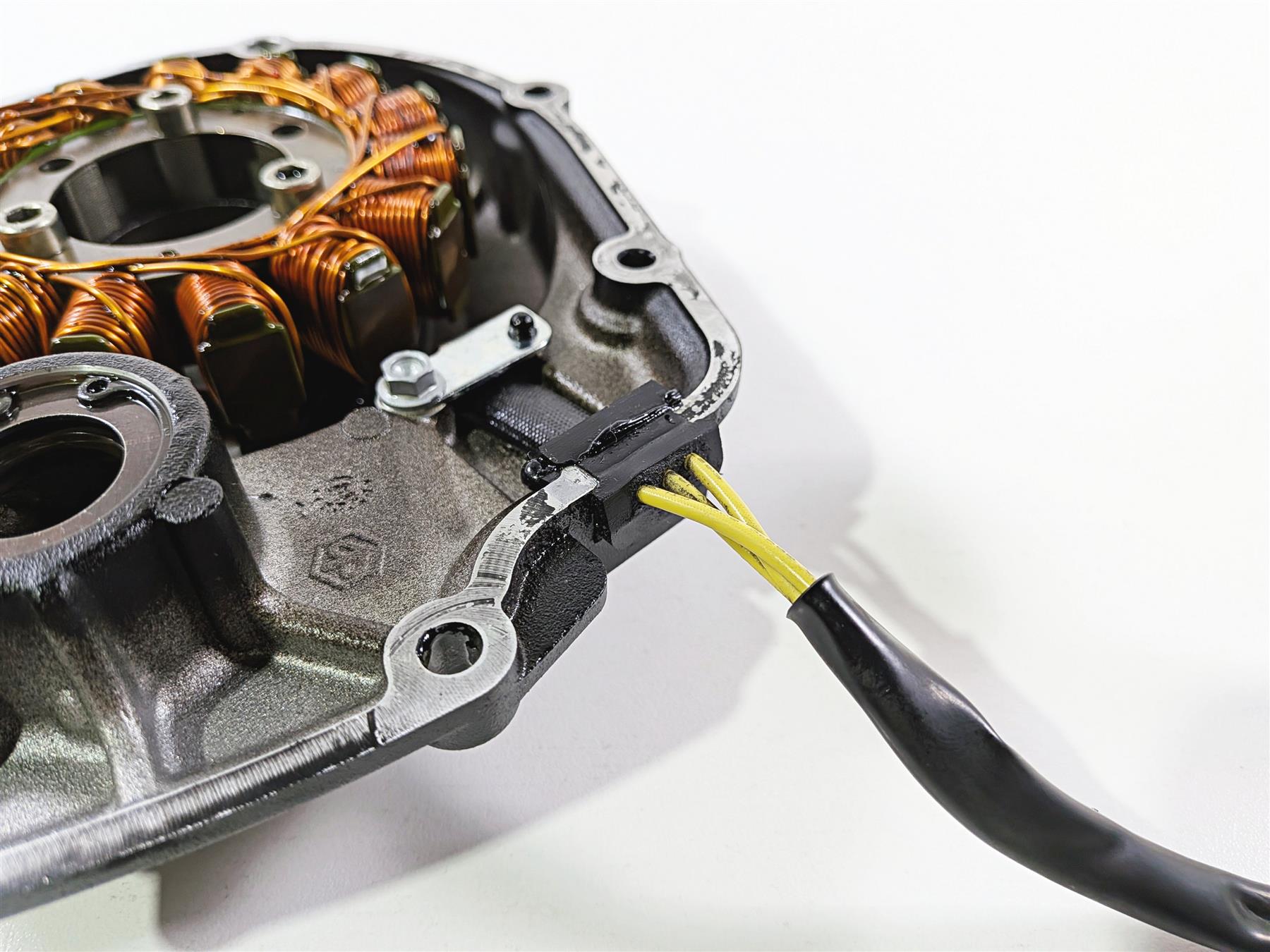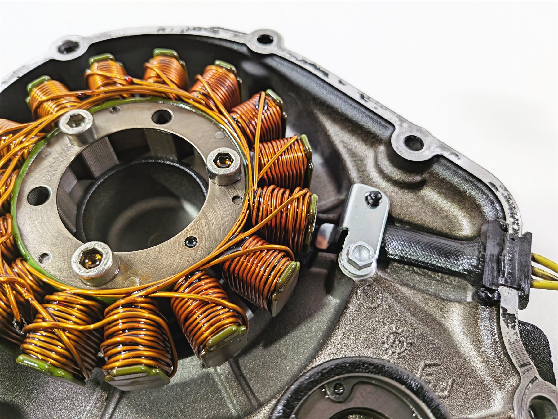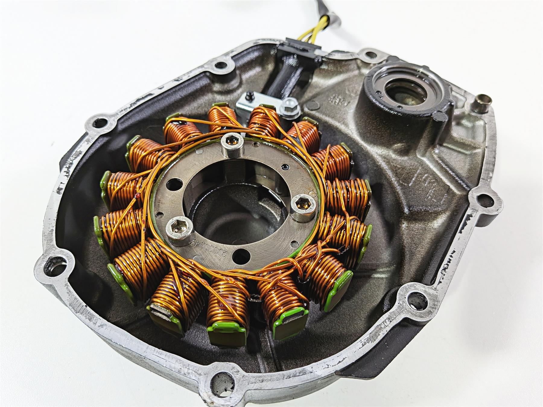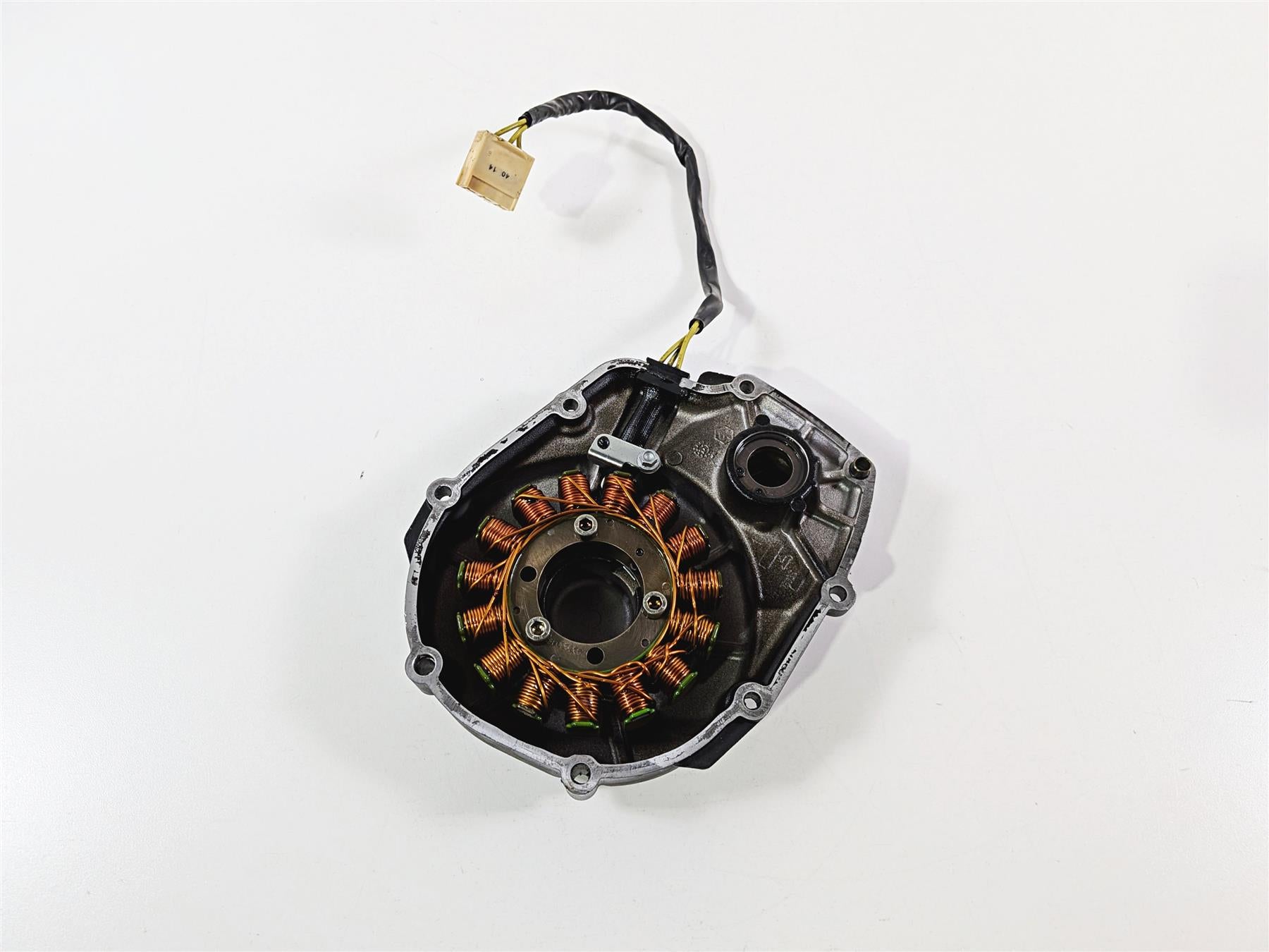 This used Stator & Engine Side Cover was removed from a 2016 Aprilia RSV 1100 Tuono V4 Factory with unknown original miles at disassembly.