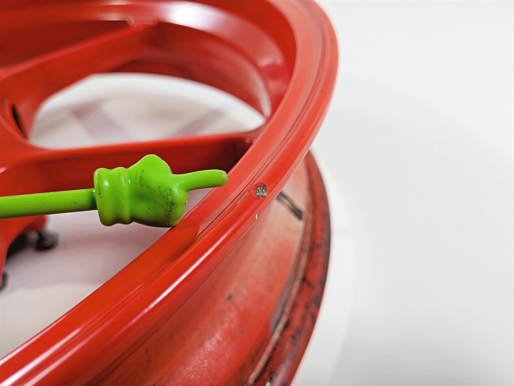 This used Strgt Front Red 17x3.5 Wheel Rim was removed from a 2016 Aprilia RSV 1100 Tuono V4 Factory with unknown original miles at disassembly.