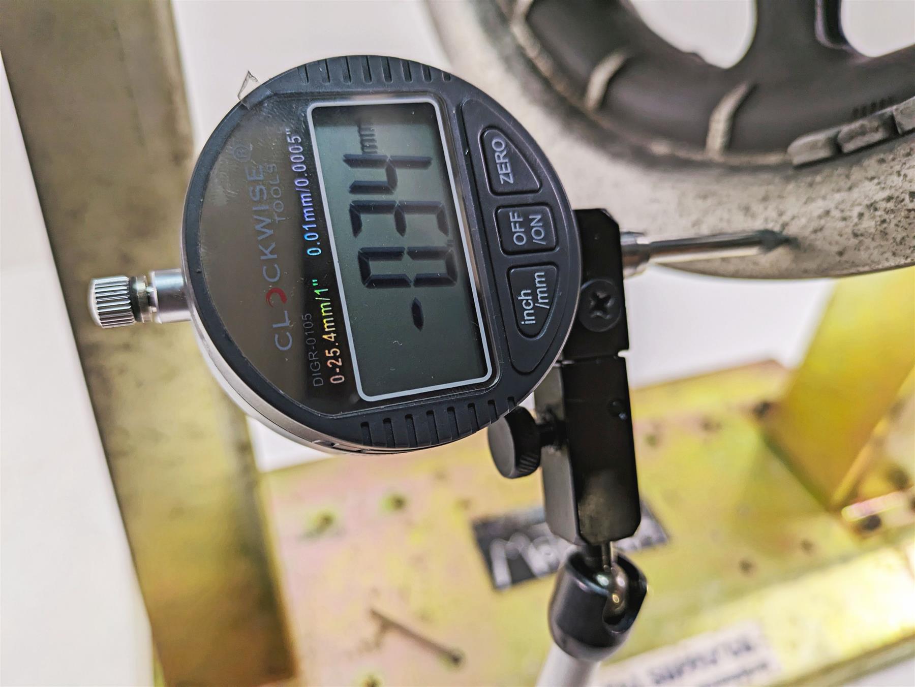 Comments: has slight wobble with runout of .34mm. Has good bearings